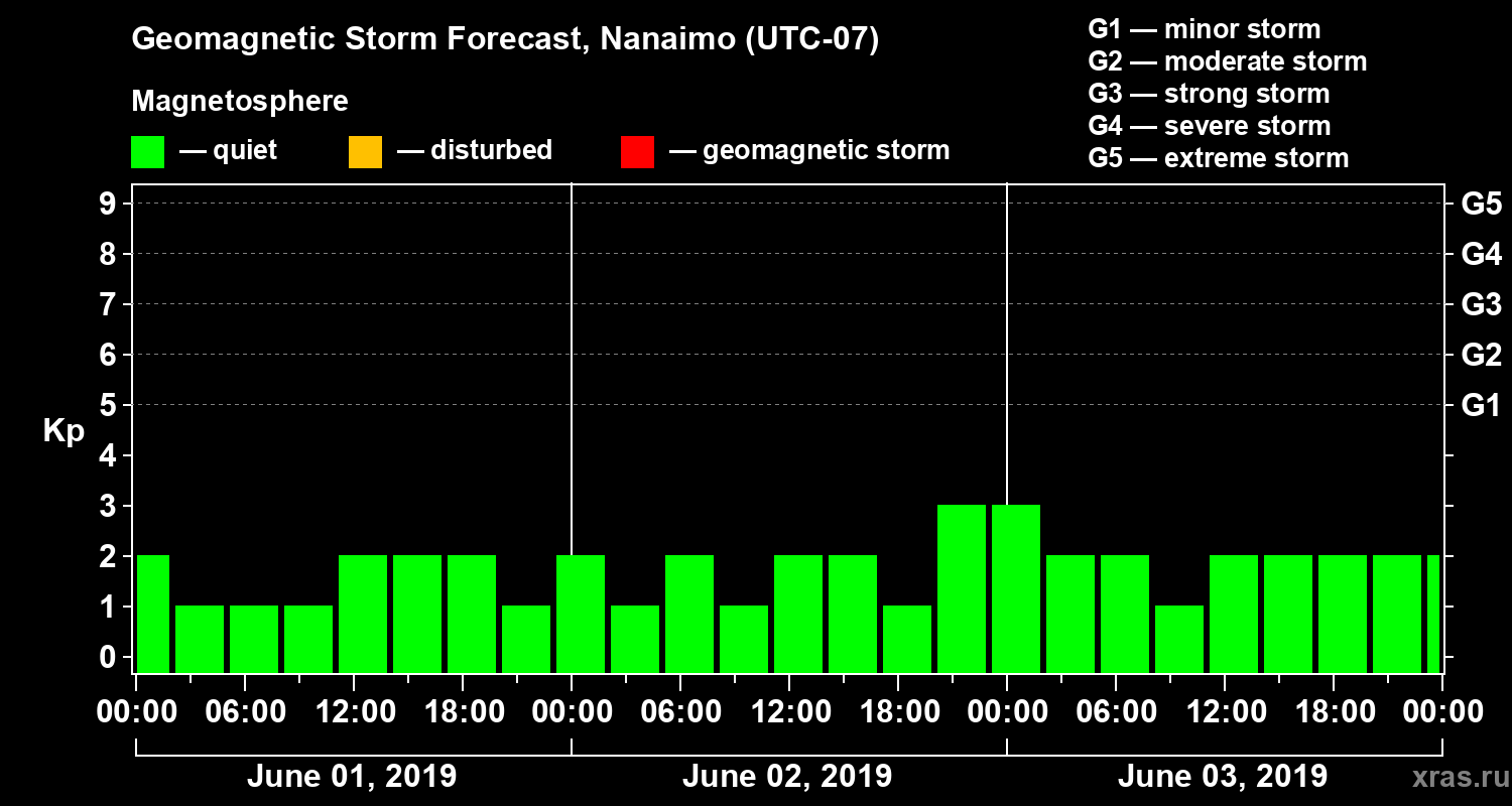Geomagnetic storm forecast in Nanaimo for Jun 01, 2019