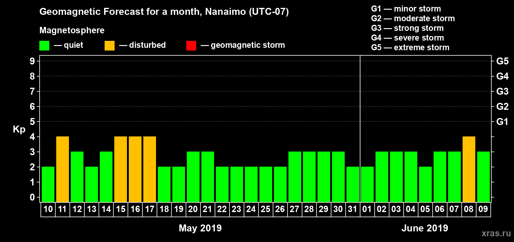 Geomagnetic storm forecast in Nanaimo for May 10, 2019