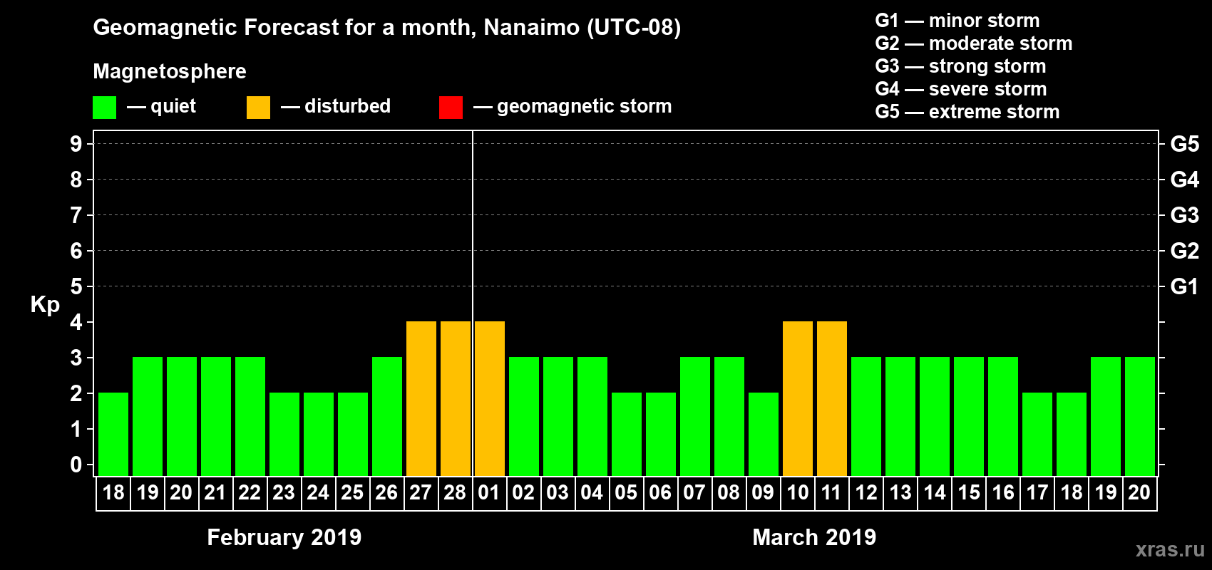 Geomagnetic storm forecast in Nanaimo for Feb 18, 2019