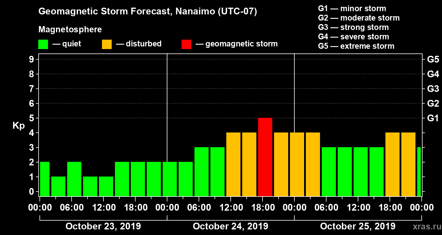 Geomagnetic storm forecast in Nanaimo for Oct 23, 2019