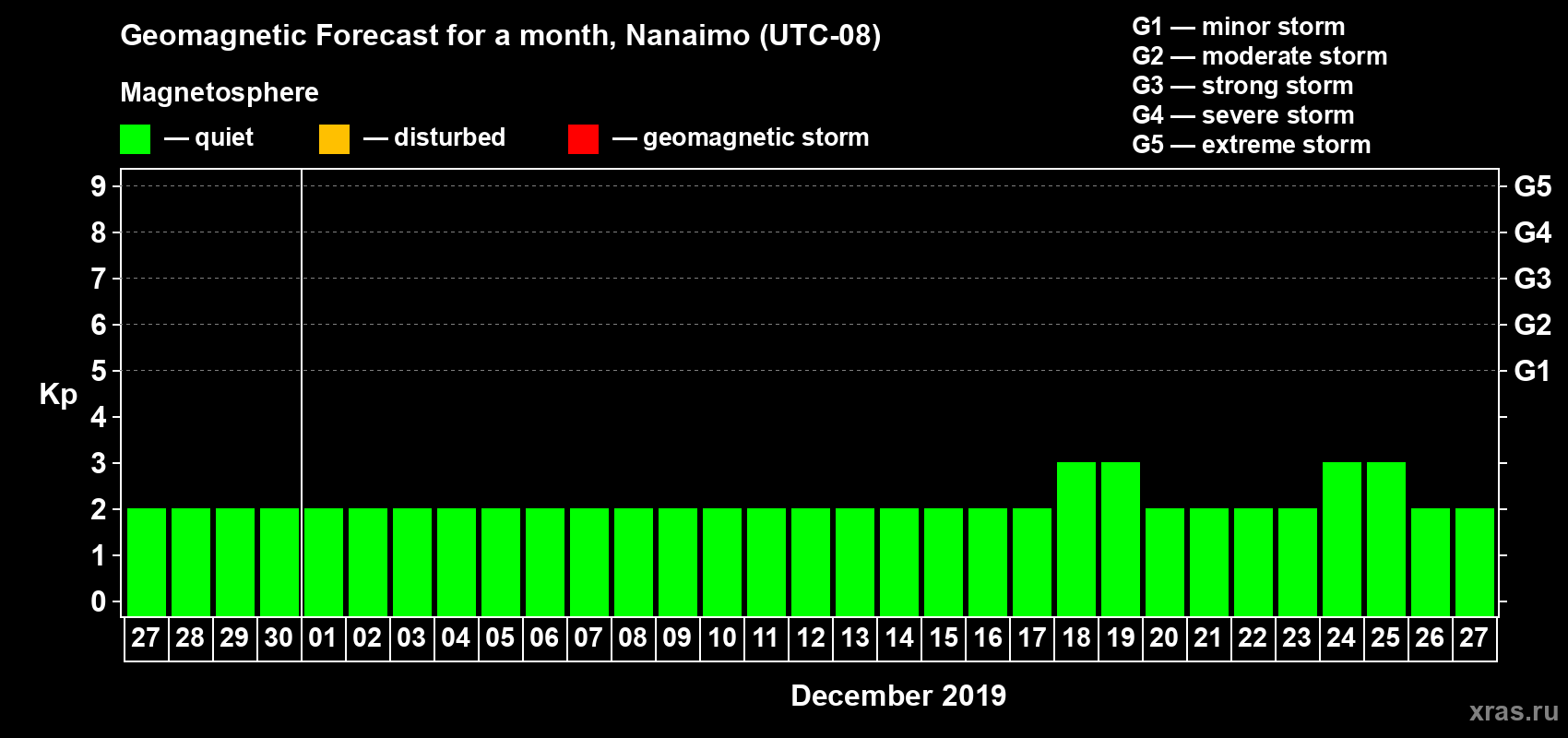 Geomagnetic activity forecast in Nanaimo — Nov 27, 2019