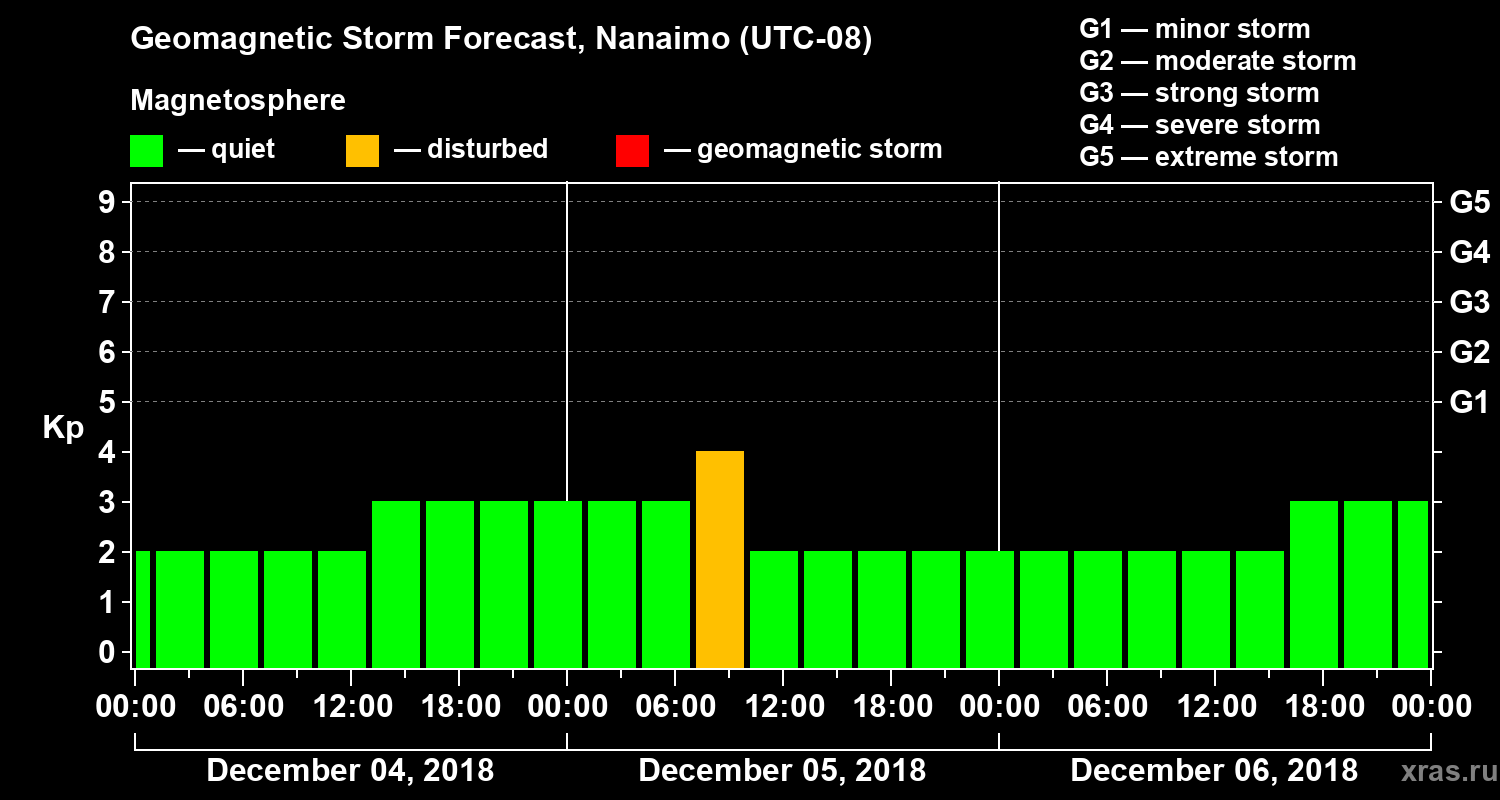 Geomagnetic storm forecast in Nanaimo for Dec 04, 2018