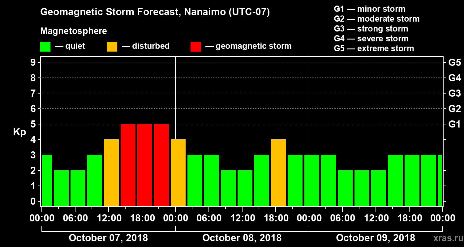 Geomagnetic storm forecast in Nanaimo for Oct 07, 2018