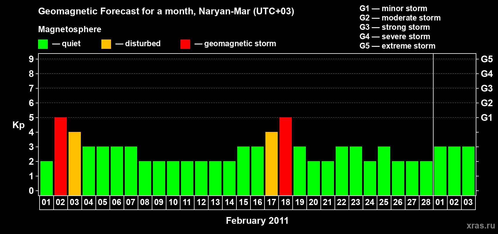 Geomagnetic storm forecast in Naryan-Mar for Feb 01, 2011