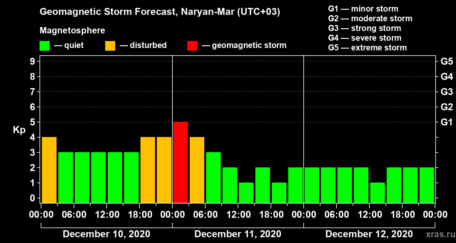 Geomagnetic activity forecast in Naryan-Mar — Dec 10, 2020