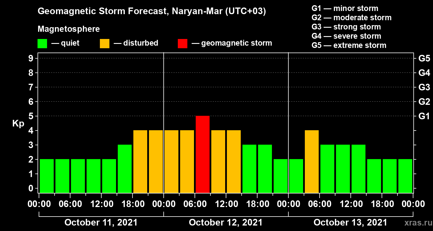 Geomagnetic activity forecast in Naryan-Mar — Oct 11, 2021