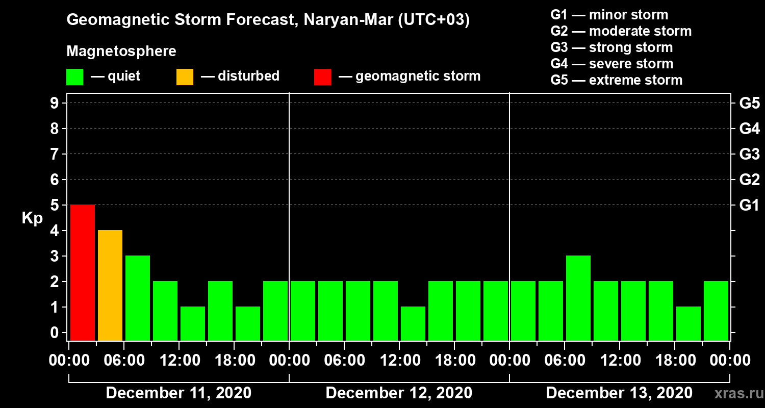 Geomagnetic activity forecast in Naryan-Mar — Dec 11, 2020