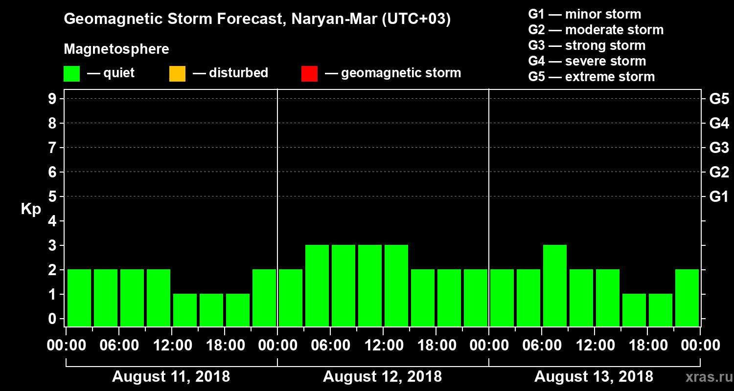 Geomagnetic activity forecast in Naryan-Mar — Aug 11, 2018