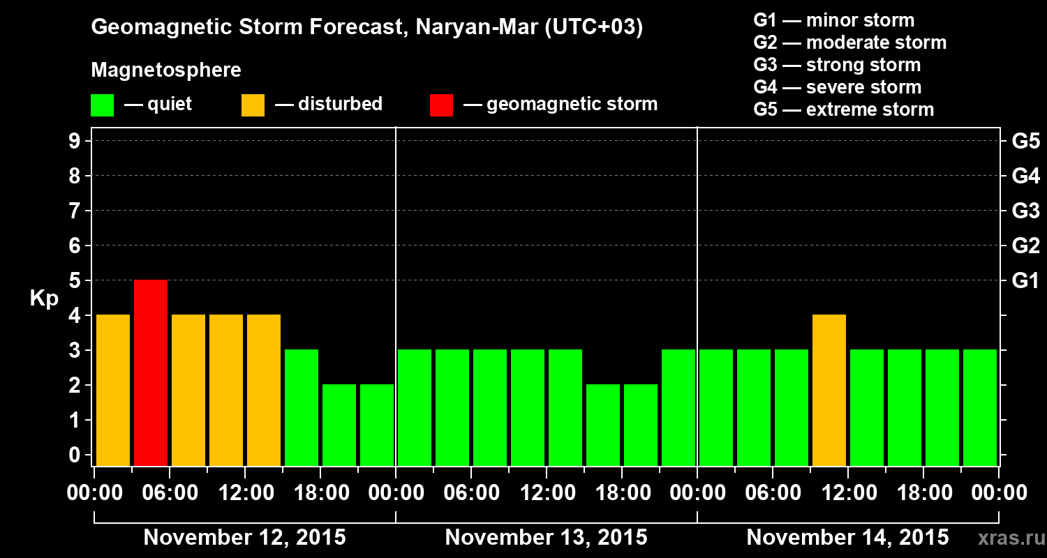 Geomagnetic activity forecast in Naryan-Mar — Nov 12, 2015