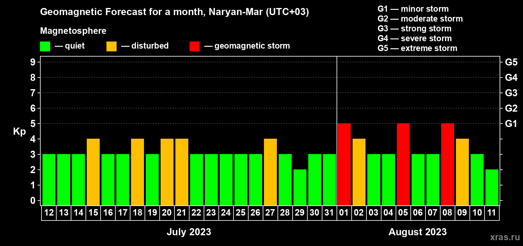 Geomagnetic activity forecast in Naryan-Mar — Jul 12, 2023