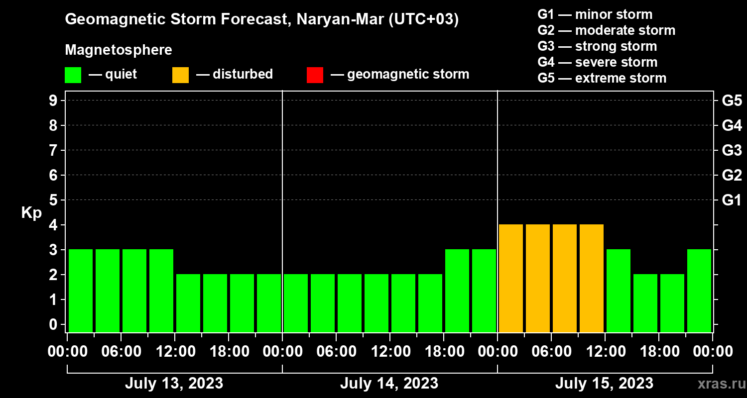 Geomagnetic activity forecast in Naryan-Mar — Jul 13, 2023