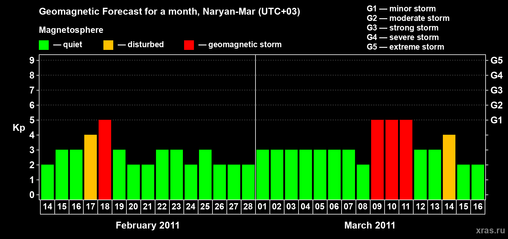 Geomagnetic storm forecast in Naryan-Mar for Feb 14, 2011