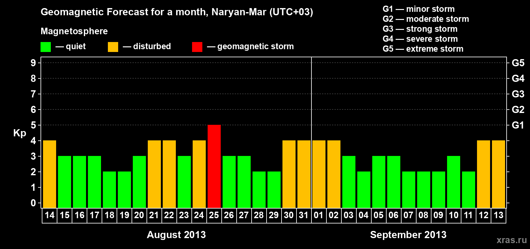Geomagnetic activity forecast in Naryan-Mar — Aug 14, 2013