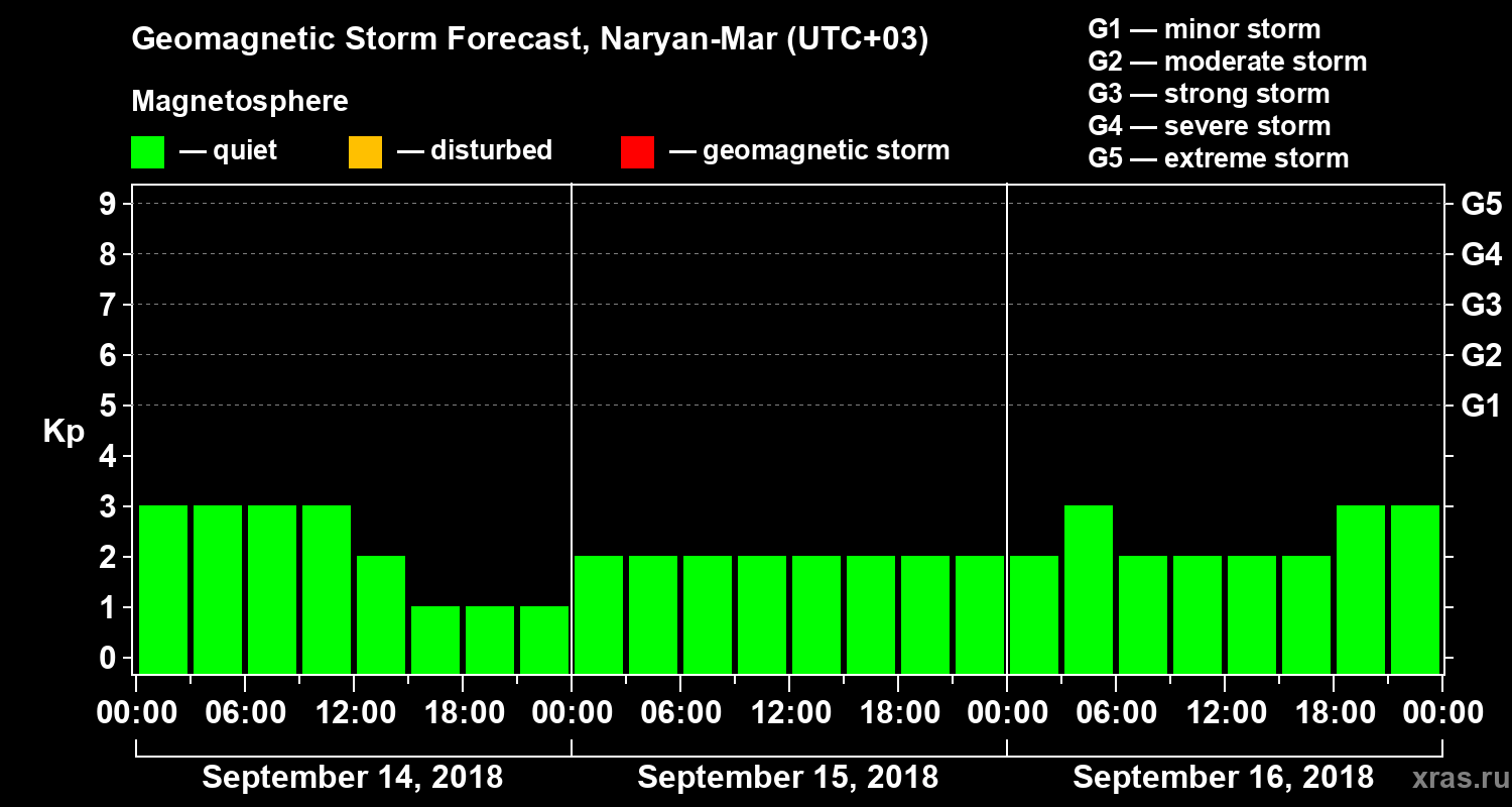 Geomagnetic storm forecast in Naryan-Mar for Sep 14, 2018