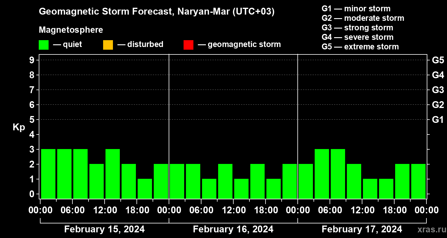 Geomagnetic activity forecast in Naryan-Mar — Feb 15, 2024
