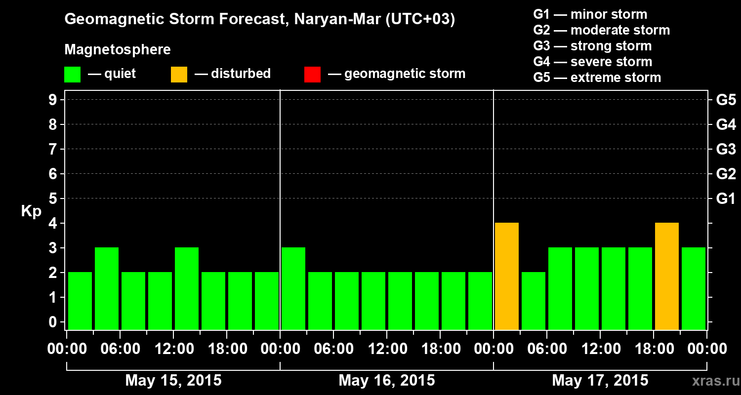 Geomagnetic activity forecast in Naryan-Mar — May 15, 2015
