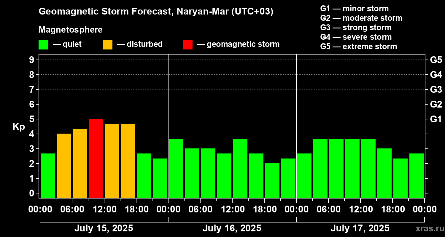 Geomagnetic storm forecast in Naryan-Mar for Jul 15, 2025