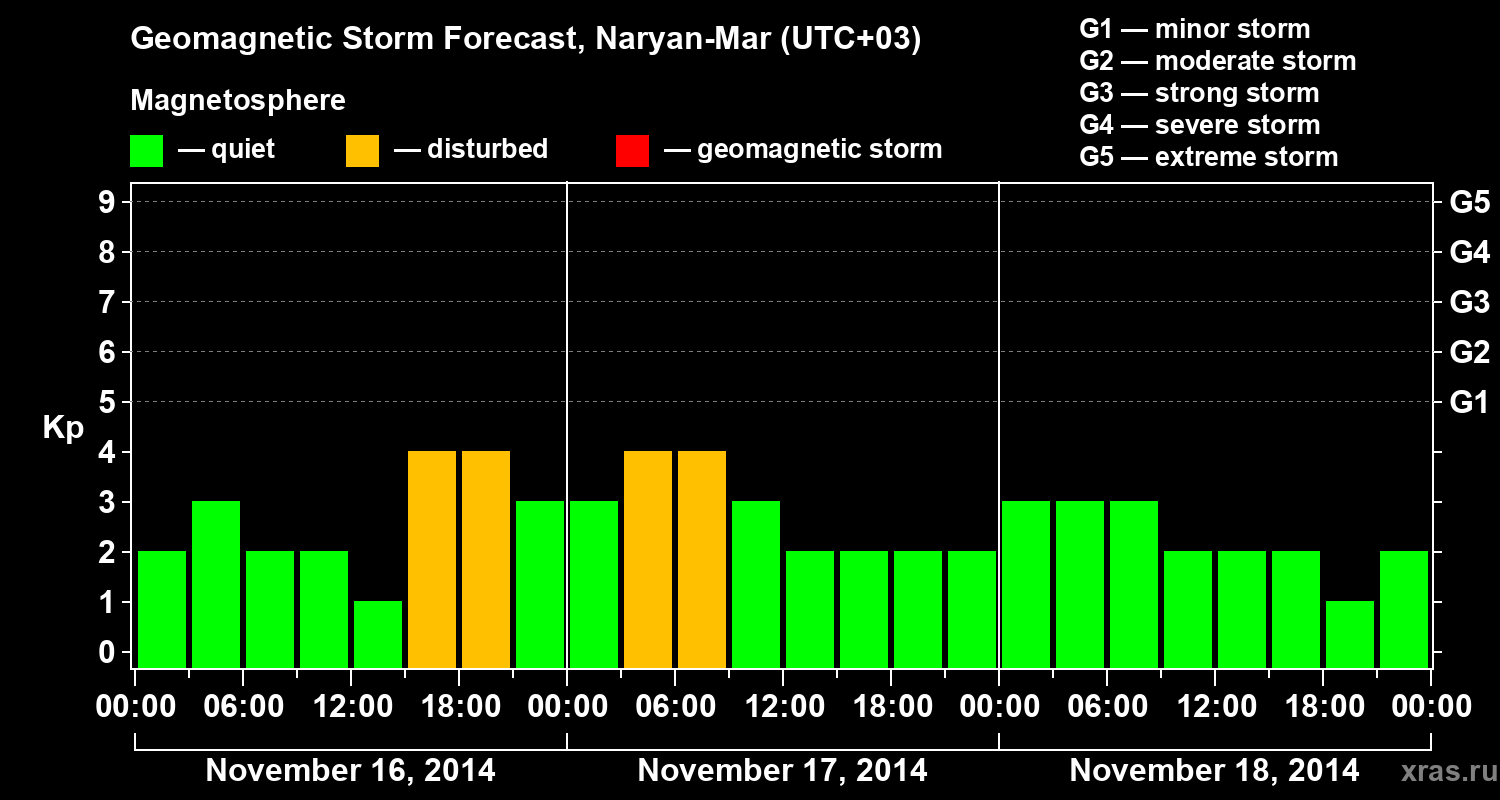 Geomagnetic activity forecast in Naryan-Mar — Nov 16, 2014