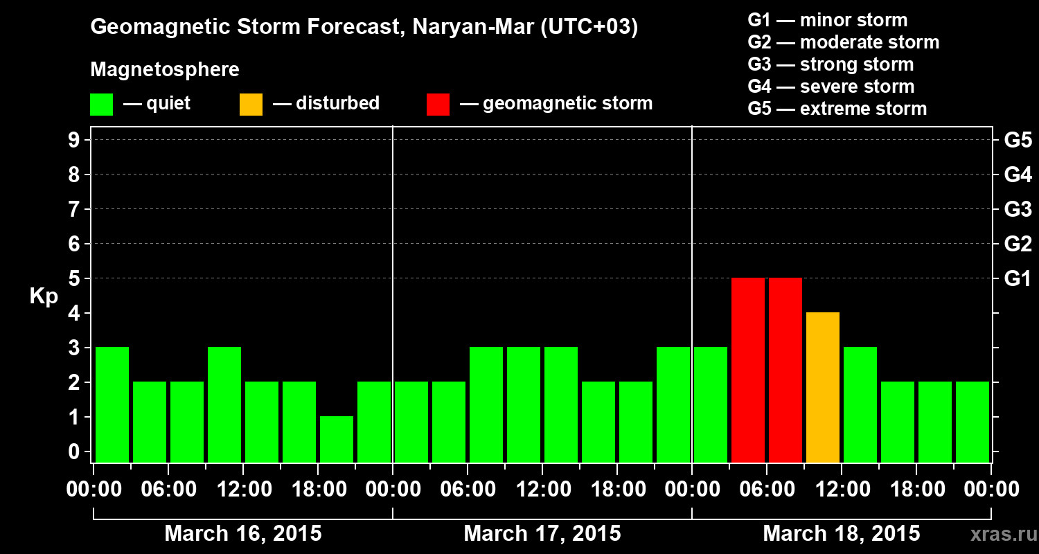 Geomagnetic storm forecast in Naryan-Mar for Mar 16, 2015