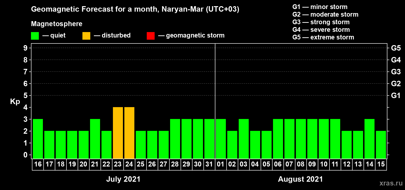 Geomagnetic activity forecast in Naryan-Mar — Jul 16, 2021