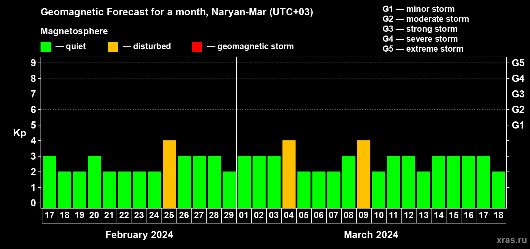 Geomagnetic activity forecast in Naryan-Mar — Feb 17, 2024