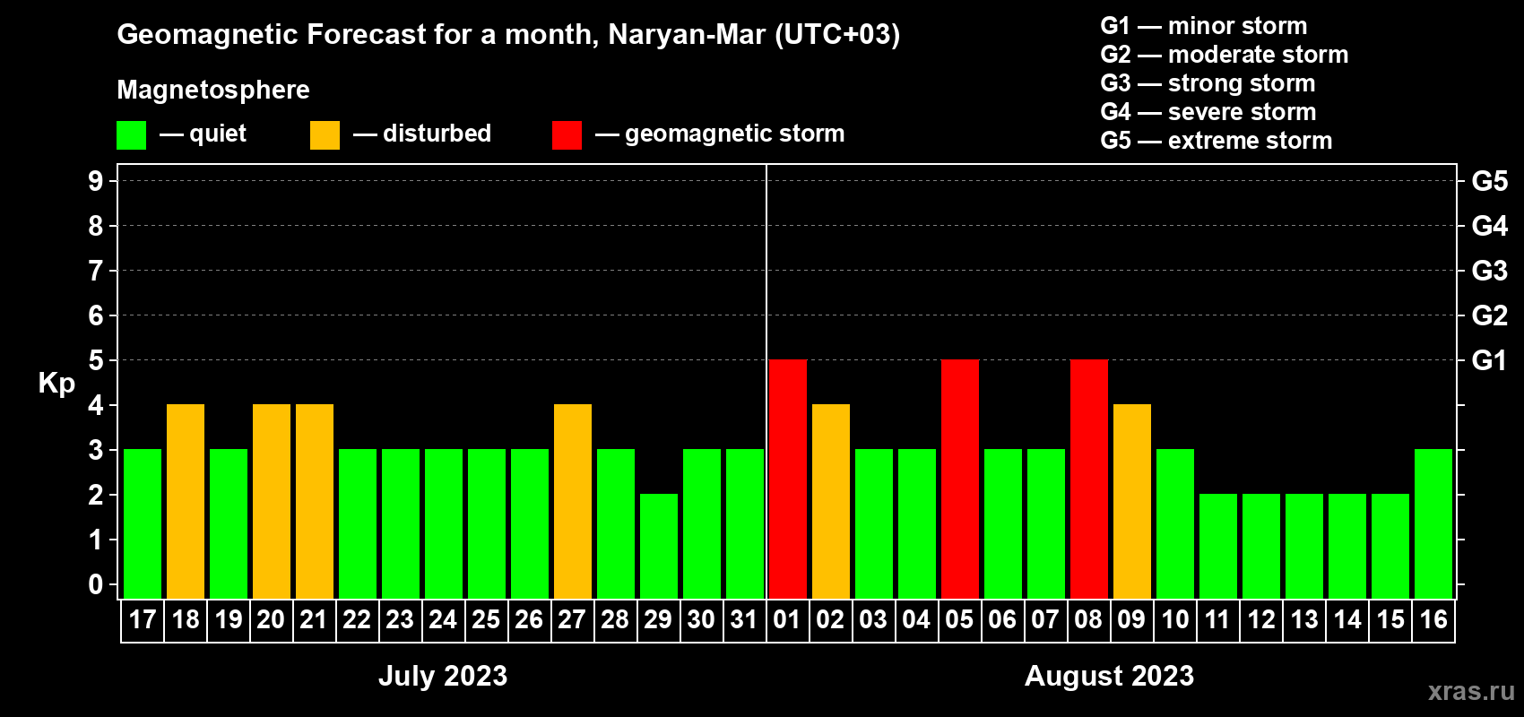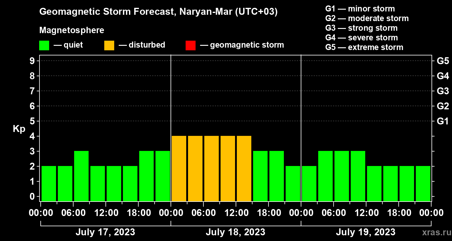 Geomagnetic activity forecast in Naryan-Mar — Jul 17, 2023