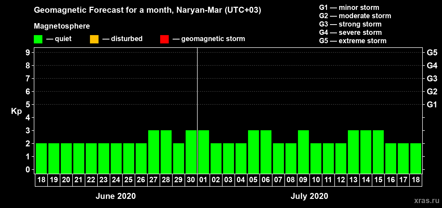 Geomagnetic activity forecast in Naryan-Mar — Jun 18, 2020