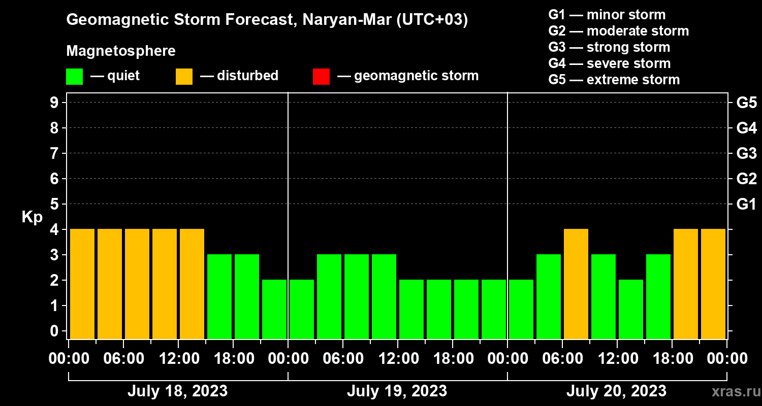 Geomagnetic storm forecast in Naryan-Mar for Jul 18, 2023