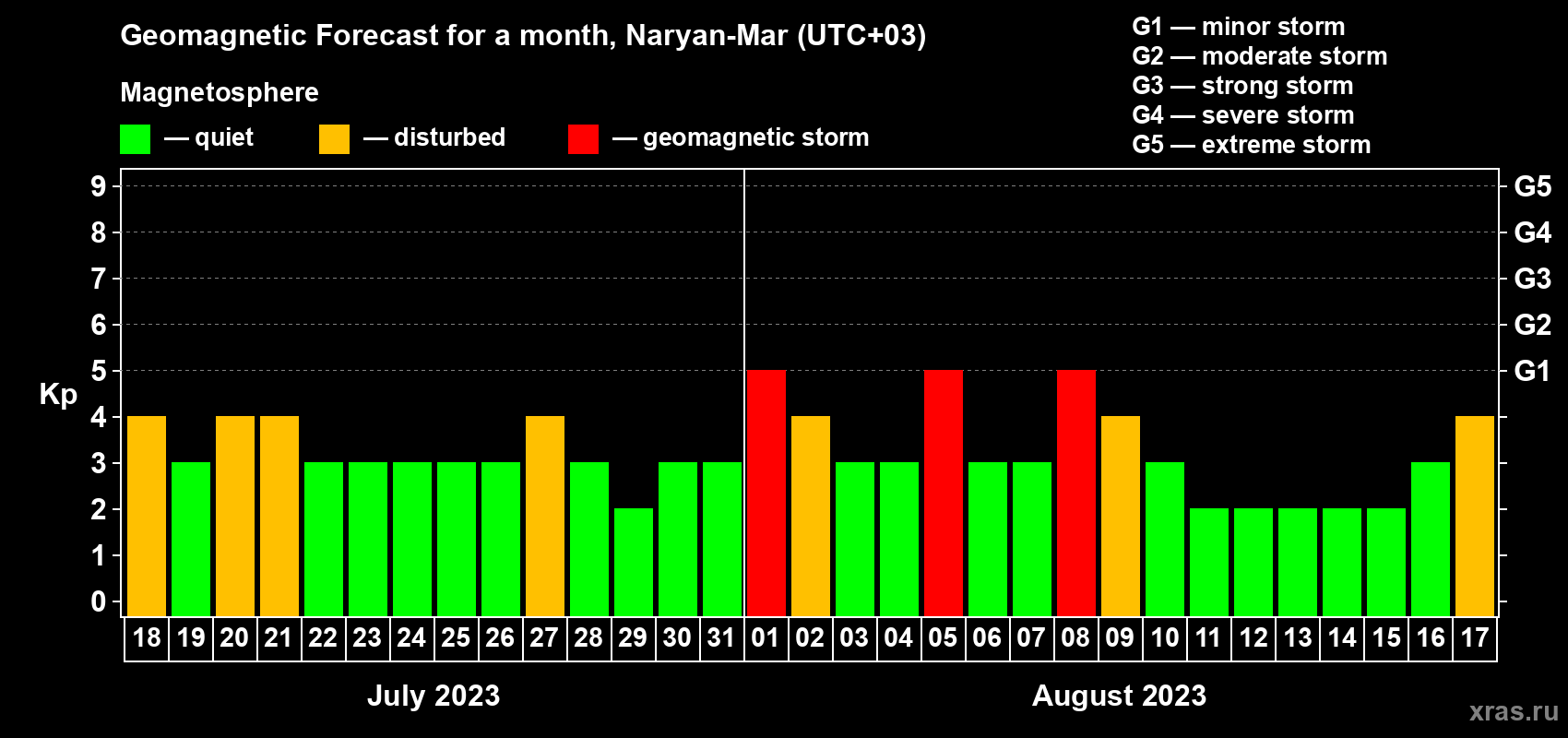 Geomagnetic activity forecast in Naryan-Mar — Jul 18, 2023