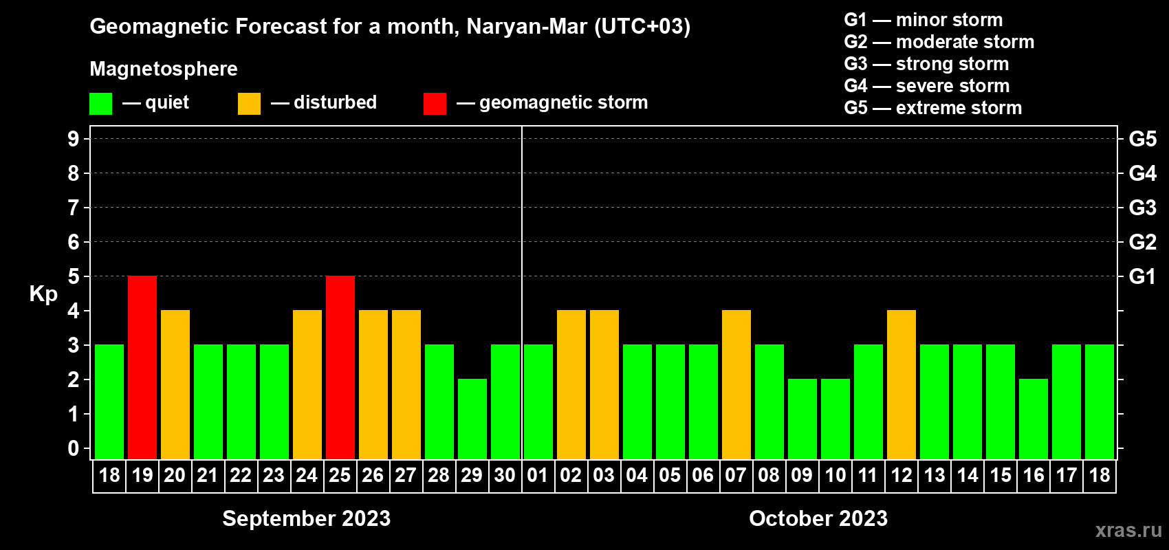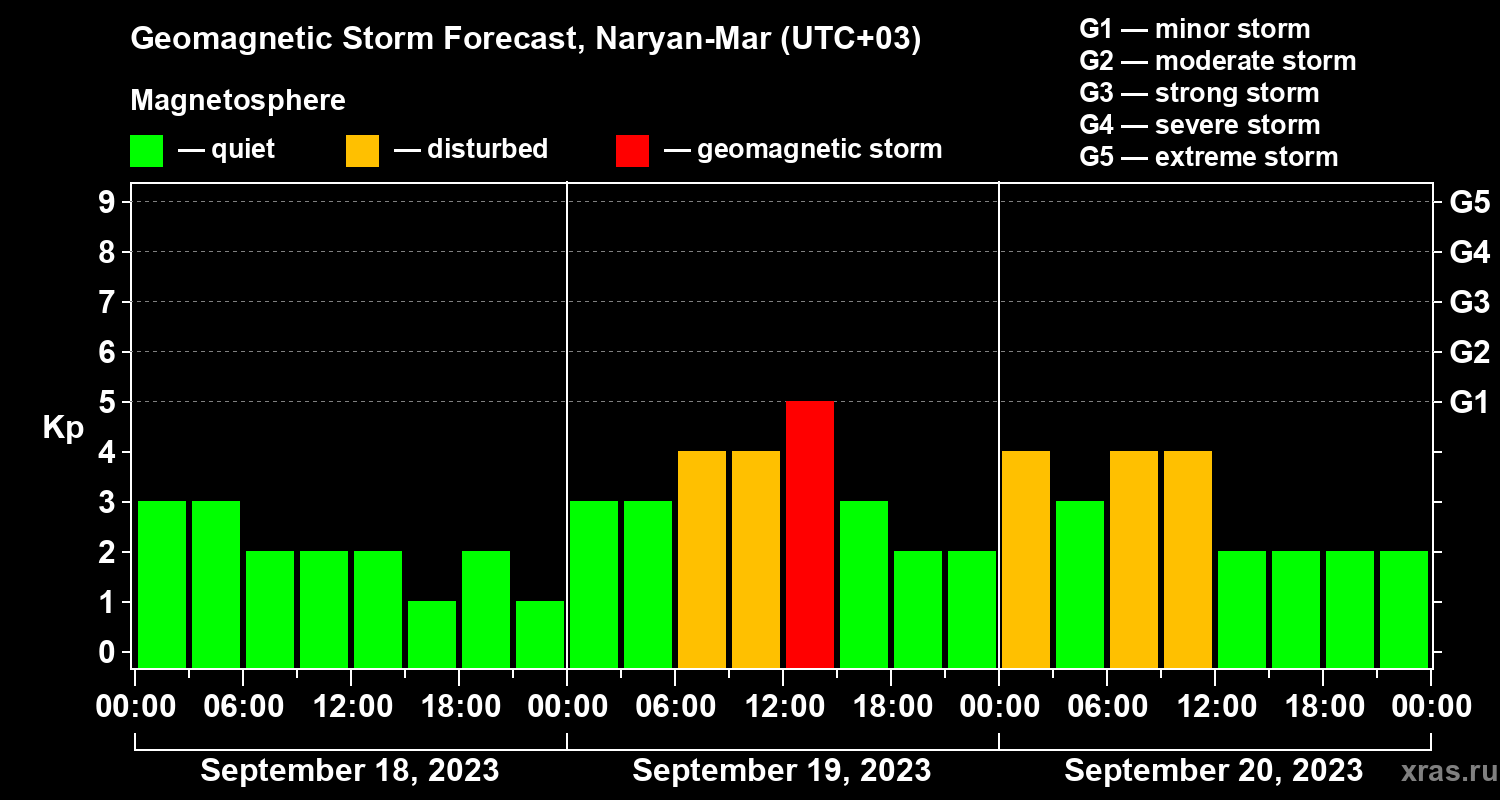 Geomagnetic activity forecast in Naryan-Mar — Sep 18, 2023