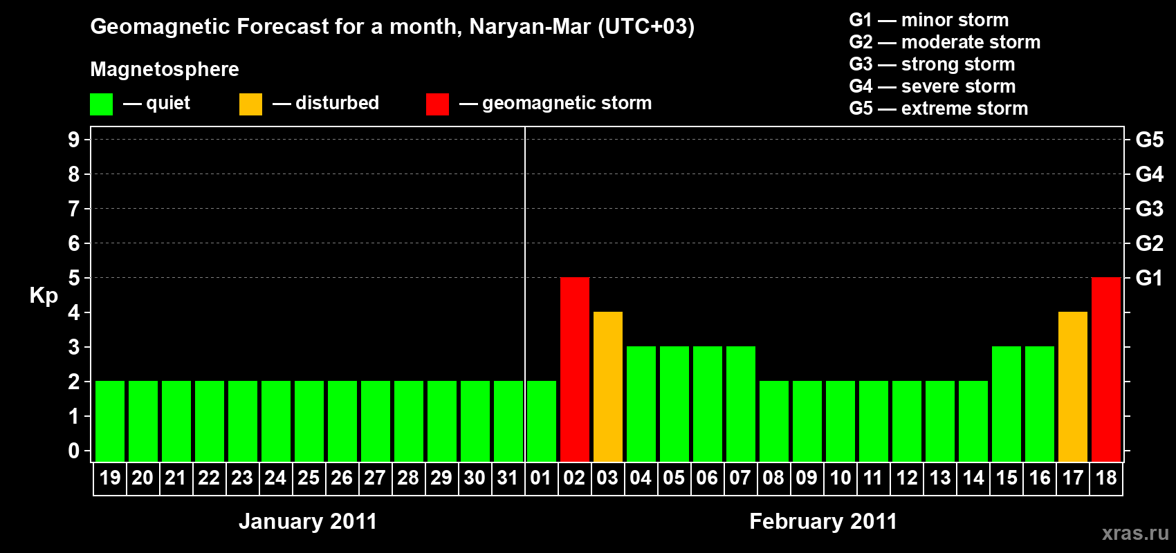 Geomagnetic storm forecast in Naryan-Mar for Jan 19, 2011