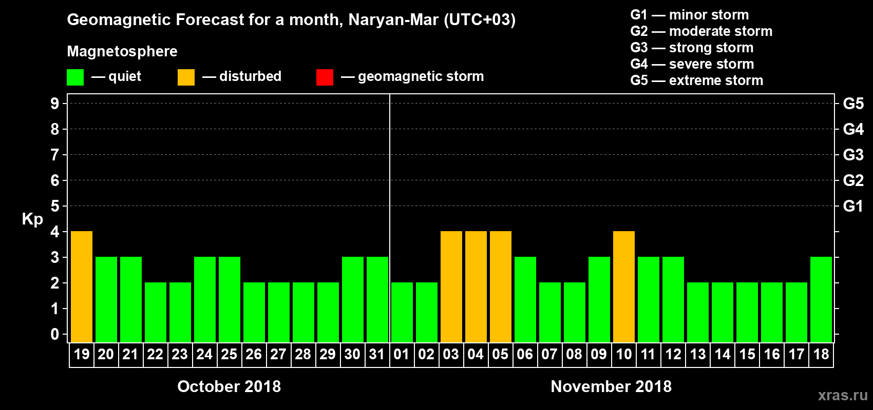 Geomagnetic activity forecast in Naryan-Mar — Oct 19, 2018