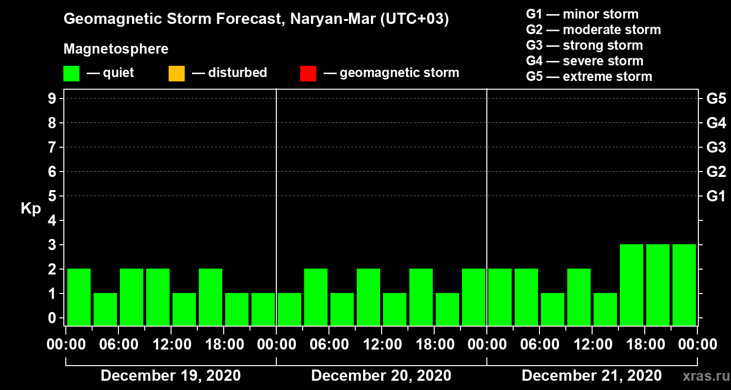 Geomagnetic activity forecast in Naryan-Mar — Dec 19, 2020