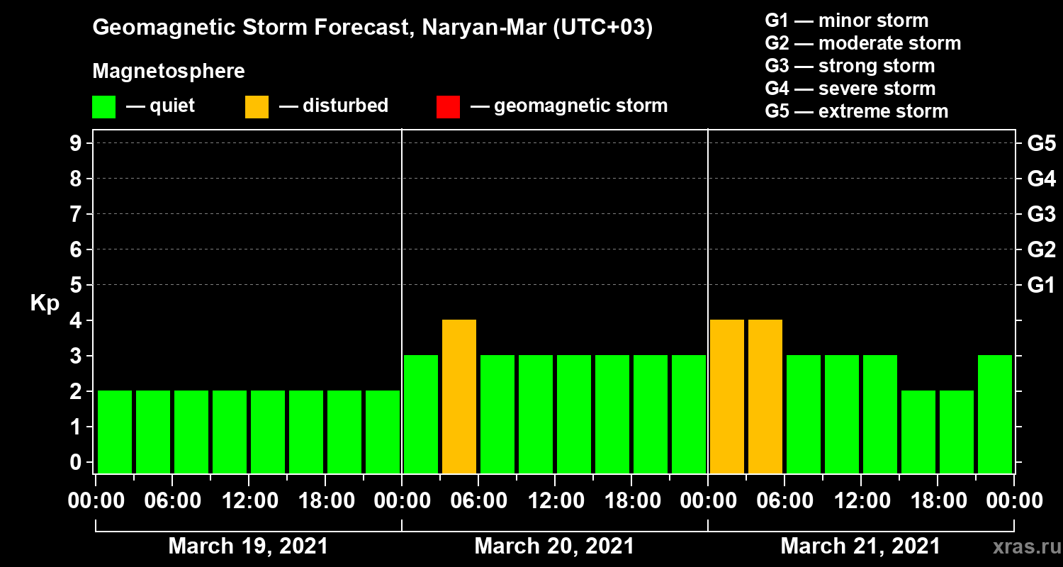 Geomagnetic activity forecast in Naryan-Mar — Mar 19, 2021