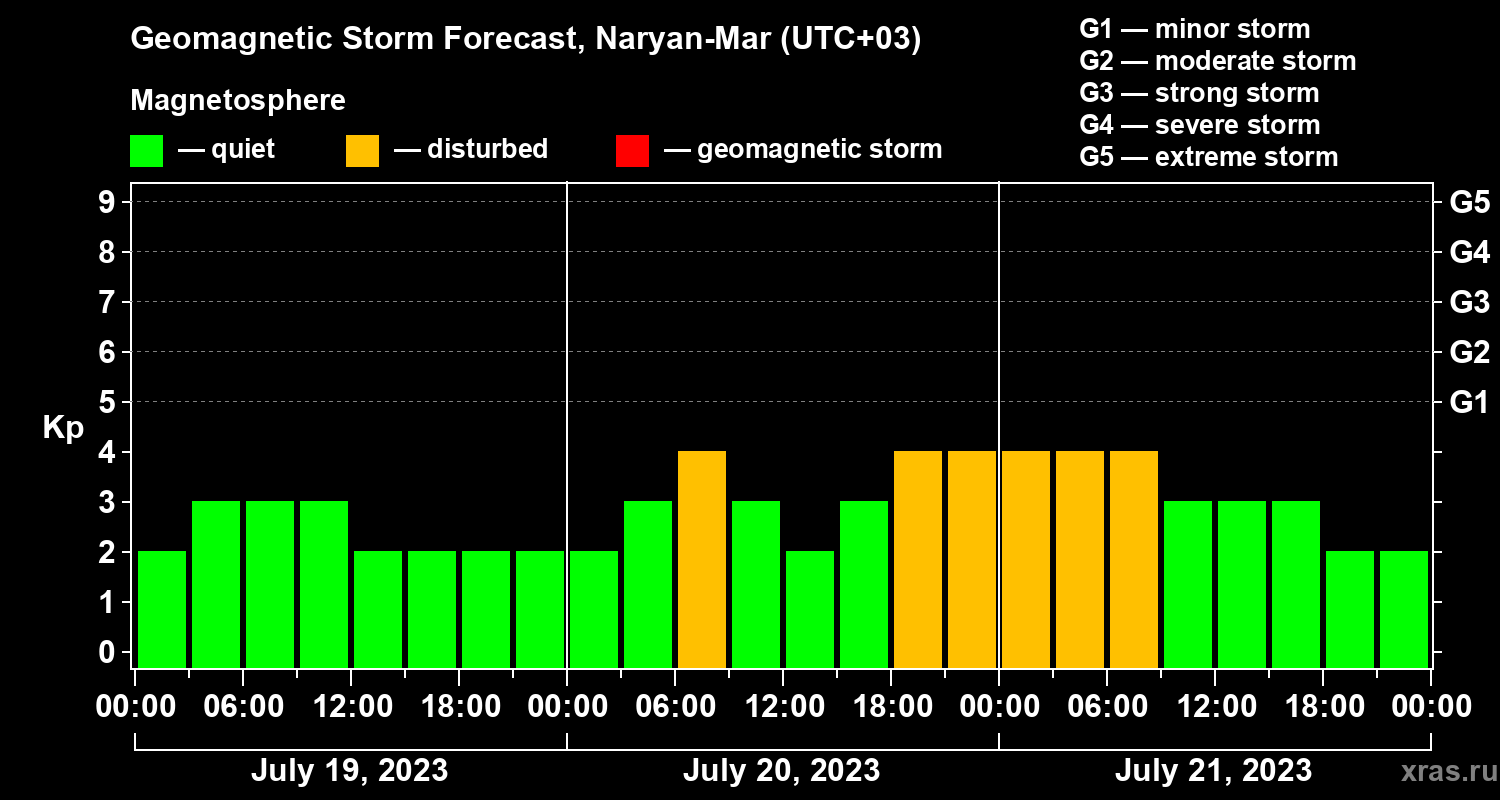 Geomagnetic activity forecast in Naryan-Mar — Jul 19, 2023