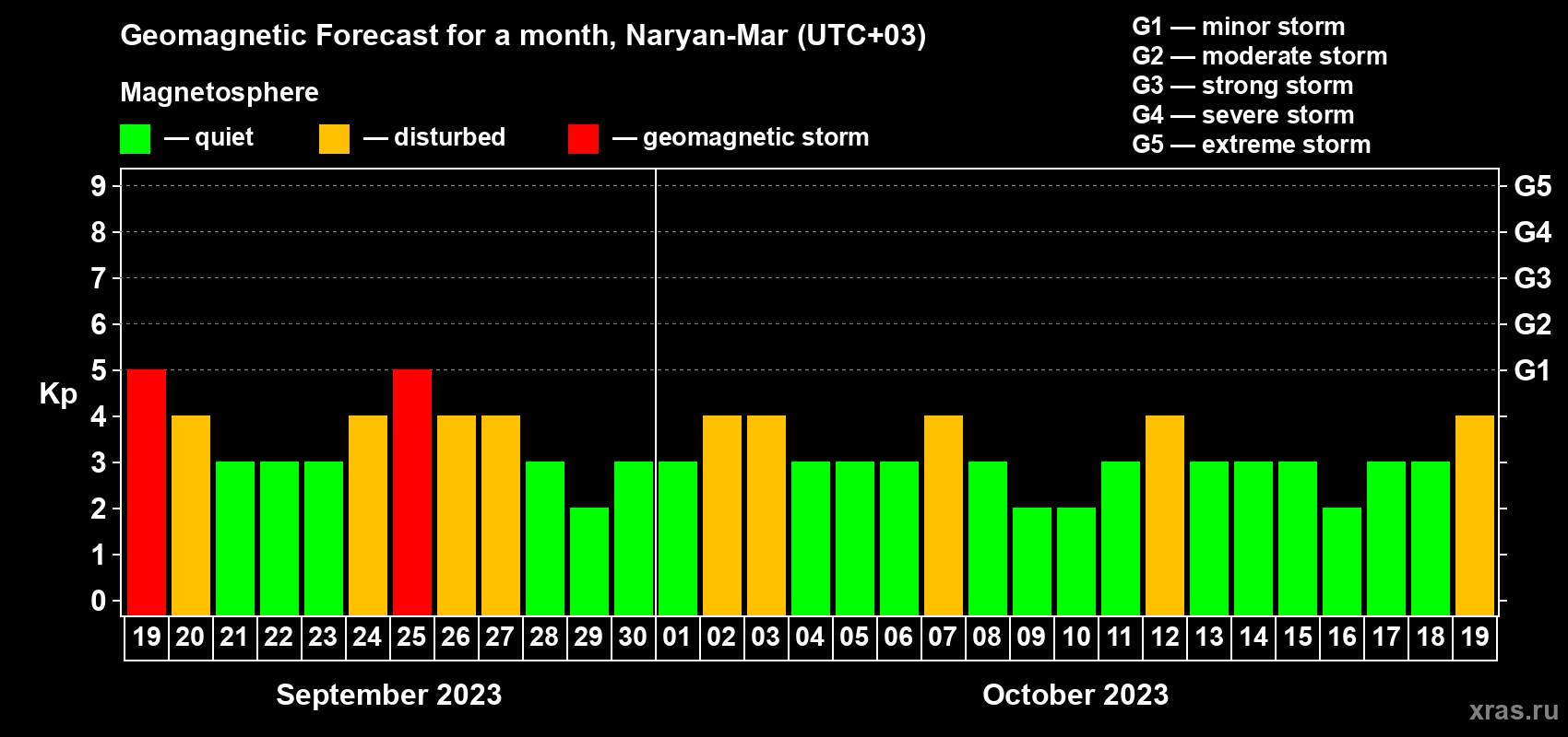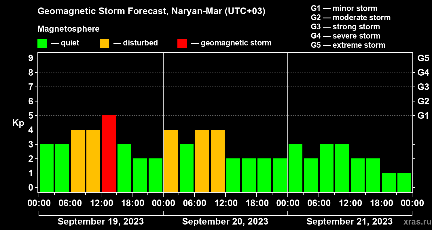 Geomagnetic activity forecast in Naryan-Mar — Sep 19, 2023