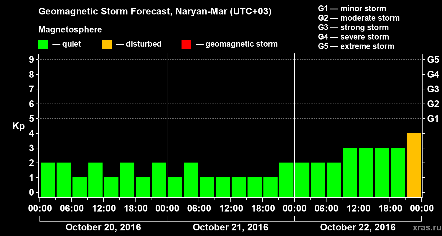 Geomagnetic activity forecast in Naryan-Mar — Oct 20, 2016