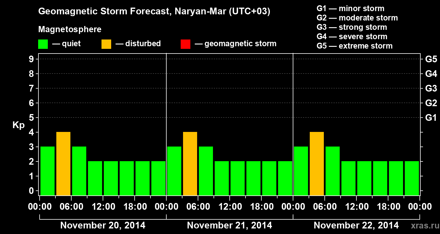 Geomagnetic activity forecast in Naryan-Mar — Nov 20, 2014