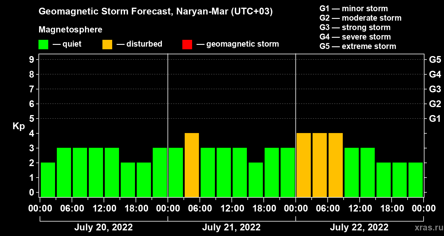 Geomagnetic activity forecast in Naryan-Mar — Jul 20, 2022