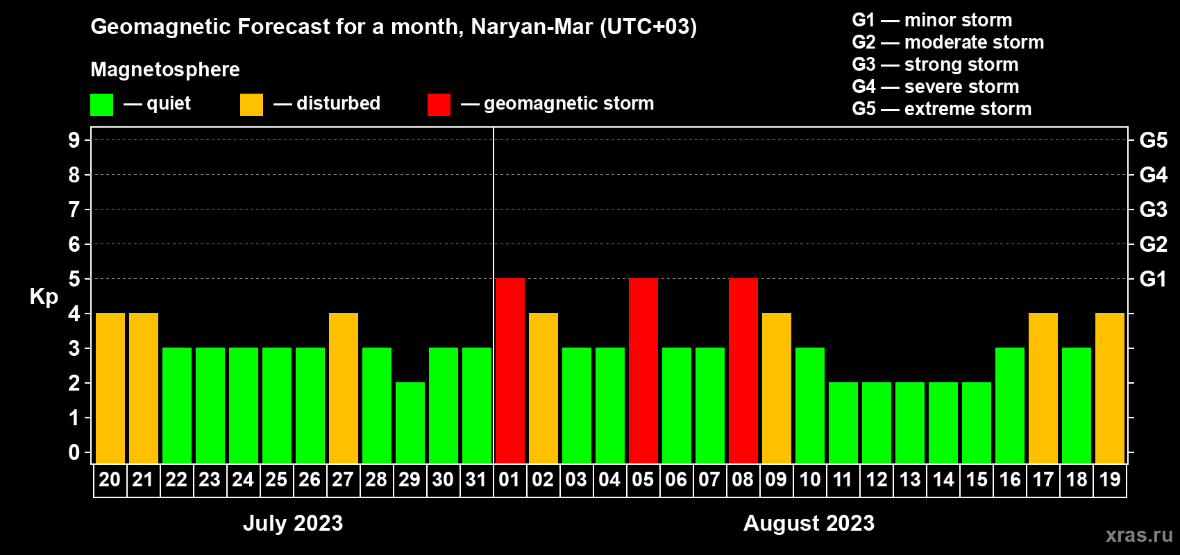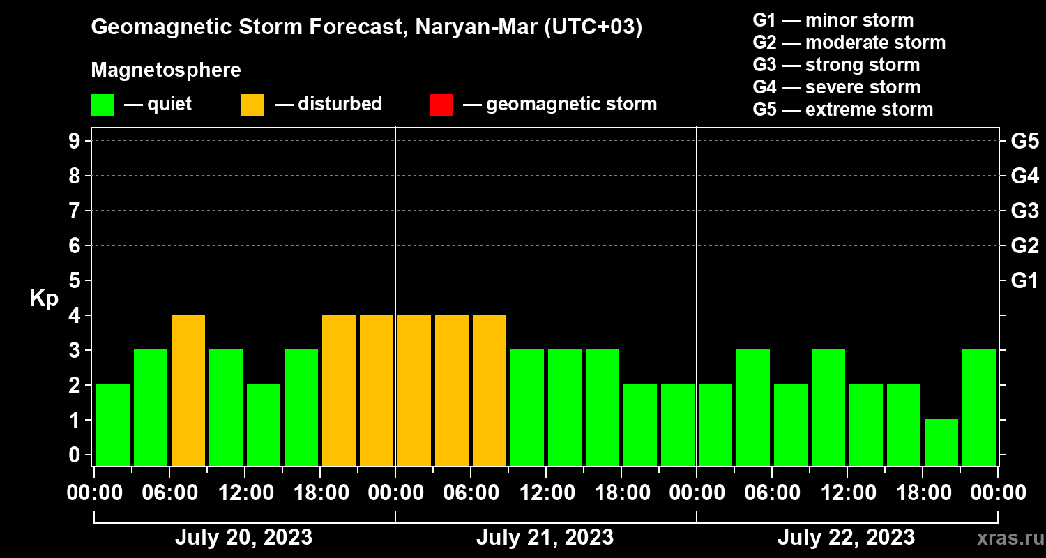Geomagnetic activity forecast in Naryan-Mar — Jul 20, 2023