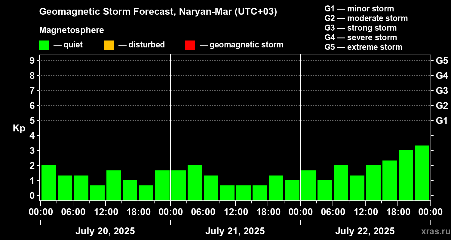 Geomagnetic activity forecast in Naryan-Mar — Jul 20, 2025