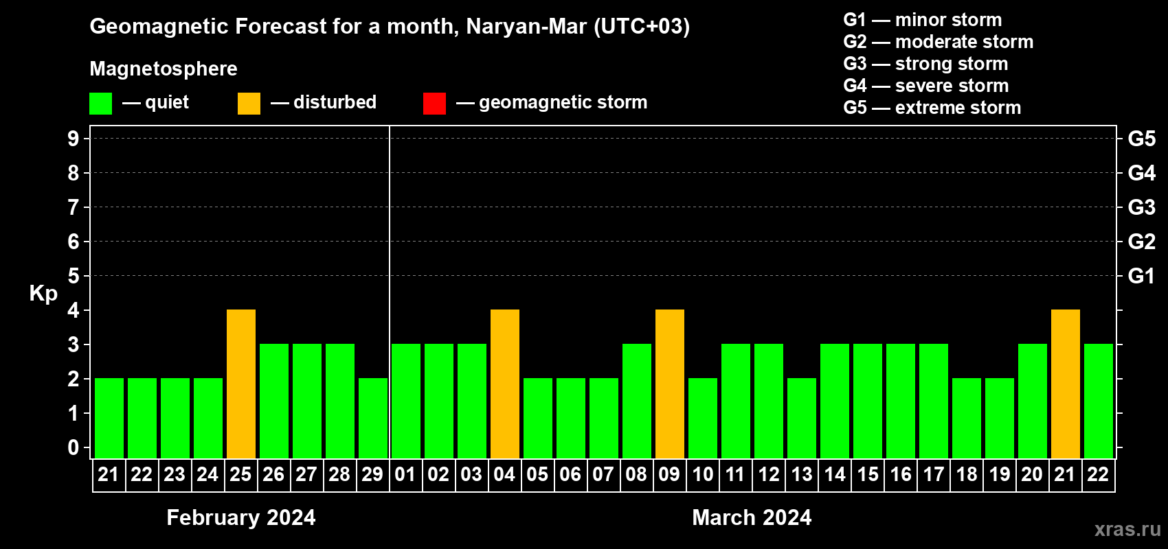 Geomagnetic activity forecast in Naryan-Mar — Feb 21, 2024
