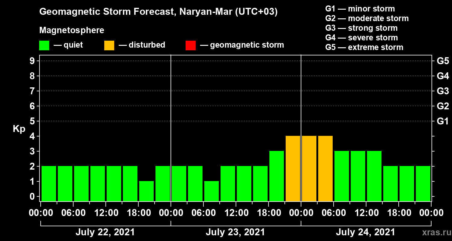 Geomagnetic storm forecast in Naryan-Mar for Jul 22, 2021