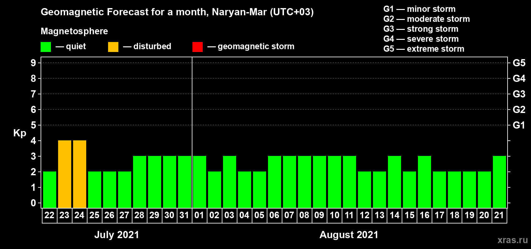 Geomagnetic activity forecast in Naryan-Mar — Jul 22, 2021