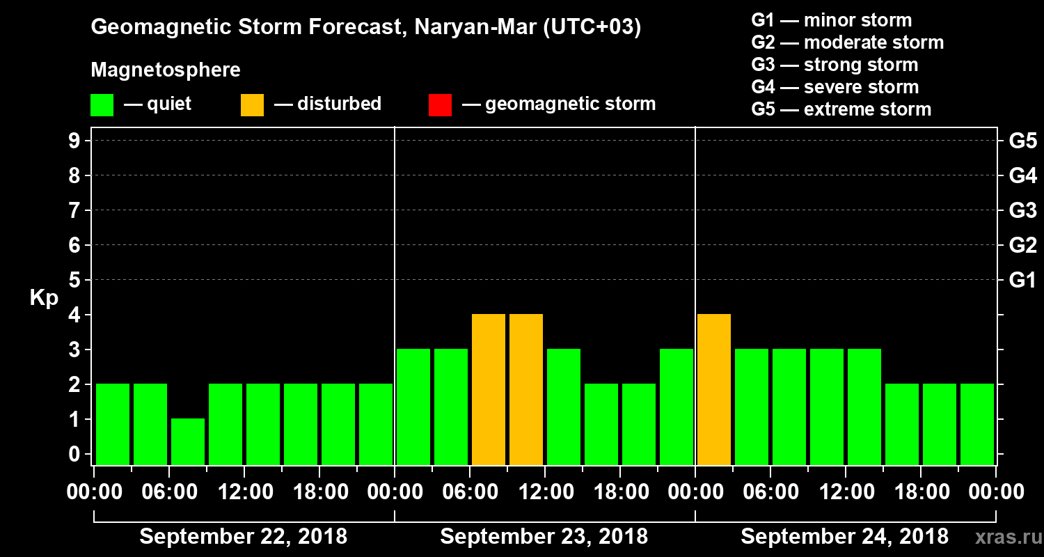 Geomagnetic storm forecast in Naryan-Mar for Sep 22, 2018