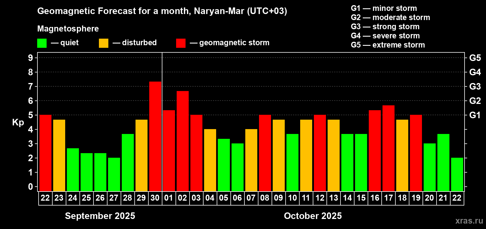 Geomagnetic storm forecast in Naryan-Mar for Sep 22, 2025