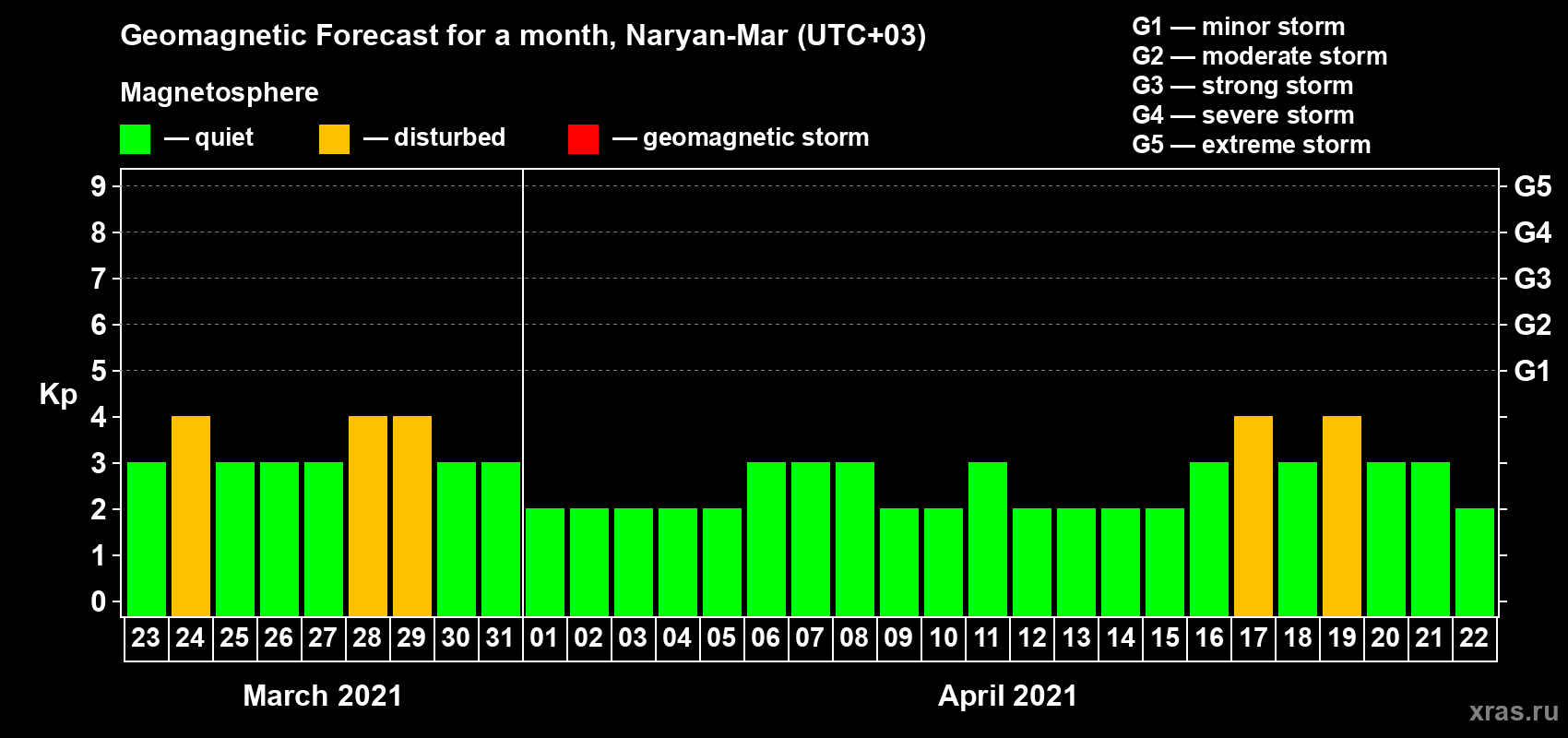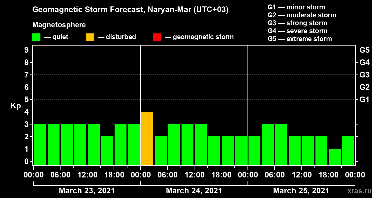 Geomagnetic activity forecast in Naryan-Mar — Mar 23, 2021