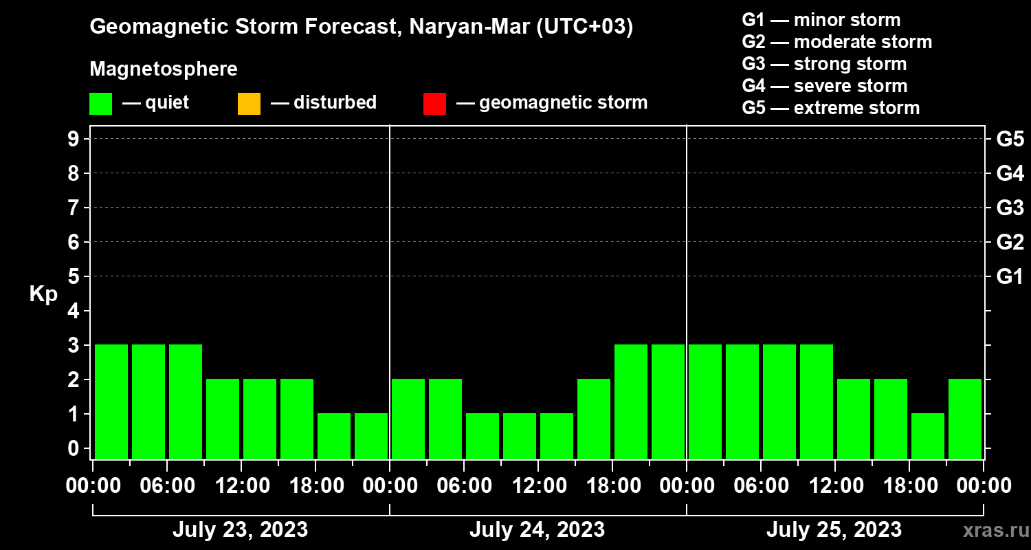 Geomagnetic activity forecast in Naryan-Mar — Jul 23, 2023