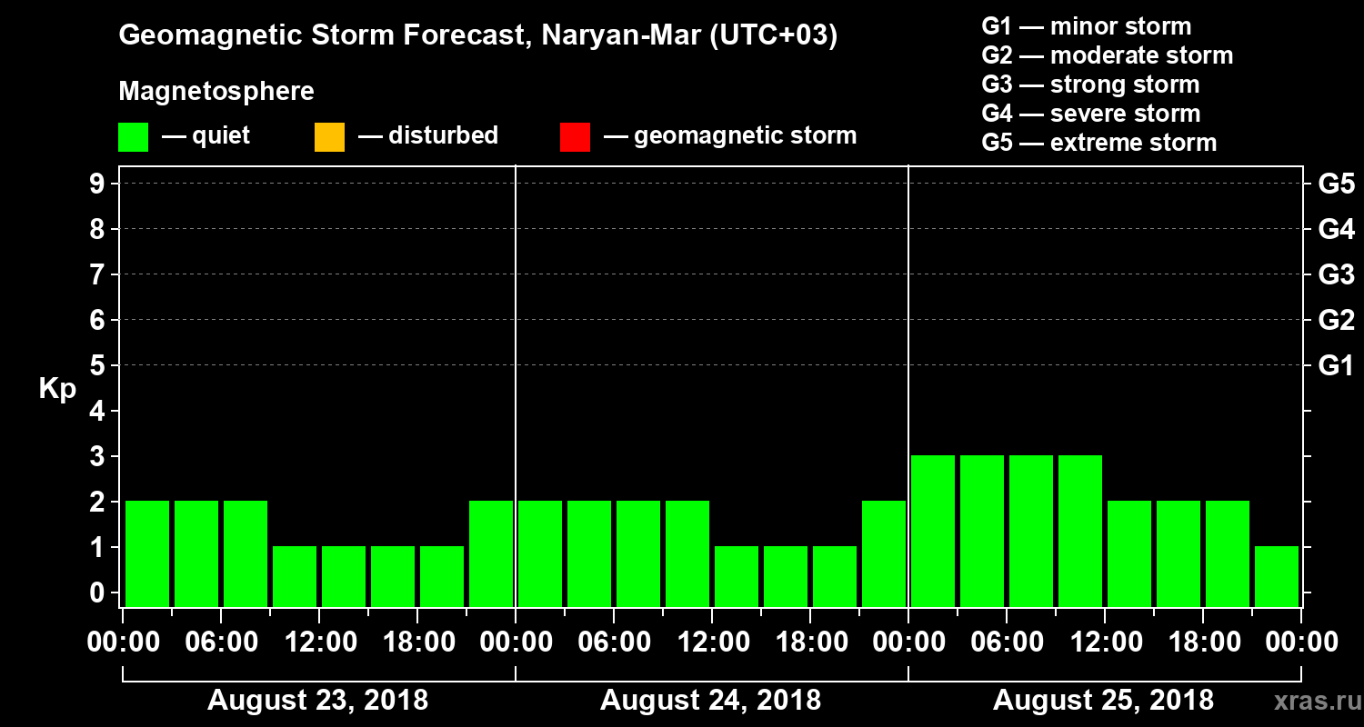 Geomagnetic activity forecast in Naryan-Mar — Aug 23, 2018