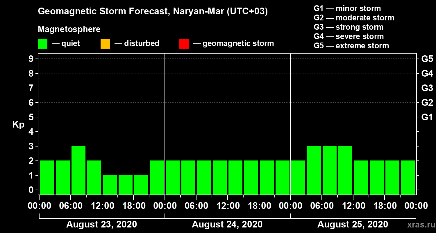 Geomagnetic activity forecast in Naryan-Mar — Aug 23, 2020